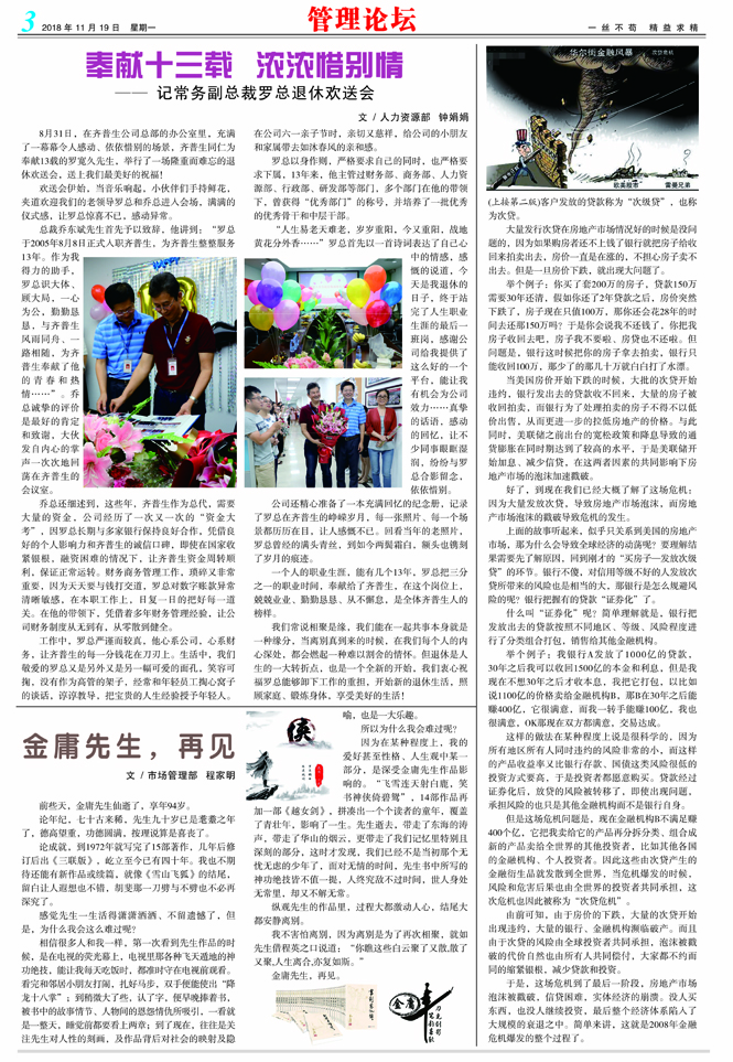 奉獻(xiàn)十三載 濃濃惜別情 ——記常務(wù)副總裁羅總退休歡送會